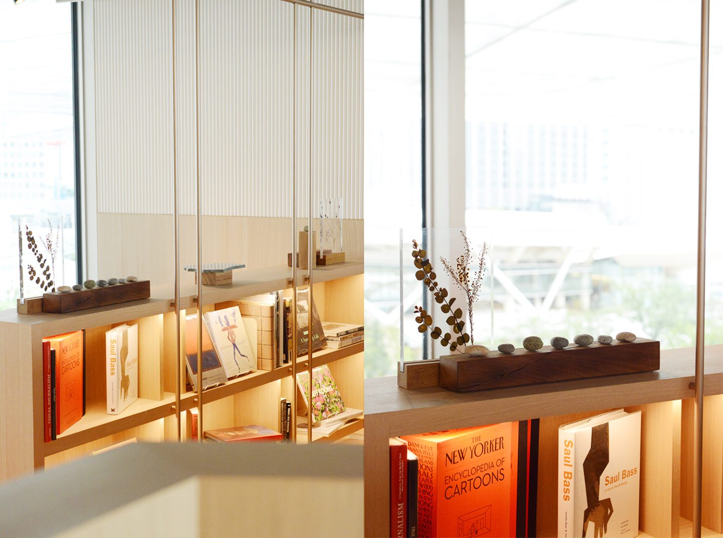 Responsible for displays across more than 10 spaces, including atop bookshelves, themed book selection corners, and areas around the reception desk. As a bookstore, they are also experimenting with challenging display methods, exploring and testing ways to showcase books that go beyond simply arranging them neatly on shelves. Within this, Atelier matic took on the role of enhancing the space with objects and other decorative elements.
