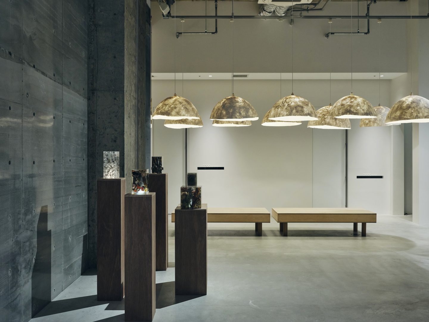 The square pillar I made as a display stand was a slim 220mm square. To ensure stability just in case, I opened up the back without obstructing the view and inserted onyx and marble blocks to use as weights. I often think about how to use stone, and while I create various products, this application really made me think, “Ah, this is it.”