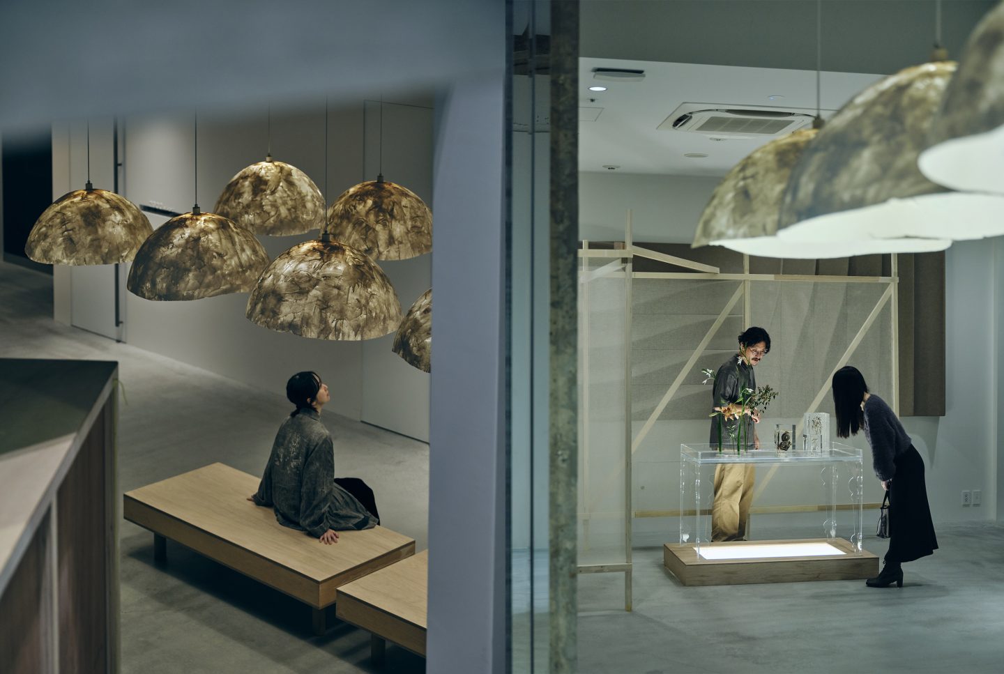 Nihonbashi Kabutocho, where redevelopment is actively underway. An exhibition by Atelier matic was held at the gallery space of Shiromizu-sha, the company responsible for the design and construction. Alongside previously created acrylic works, several new acrylic pieces and large lampshades were displayed. This time, however, the focus was on spatial presentation, creating an exhibition that questioned where the artwork ended and the space itself began—suggesting that perhaps the entire space was the artwork.